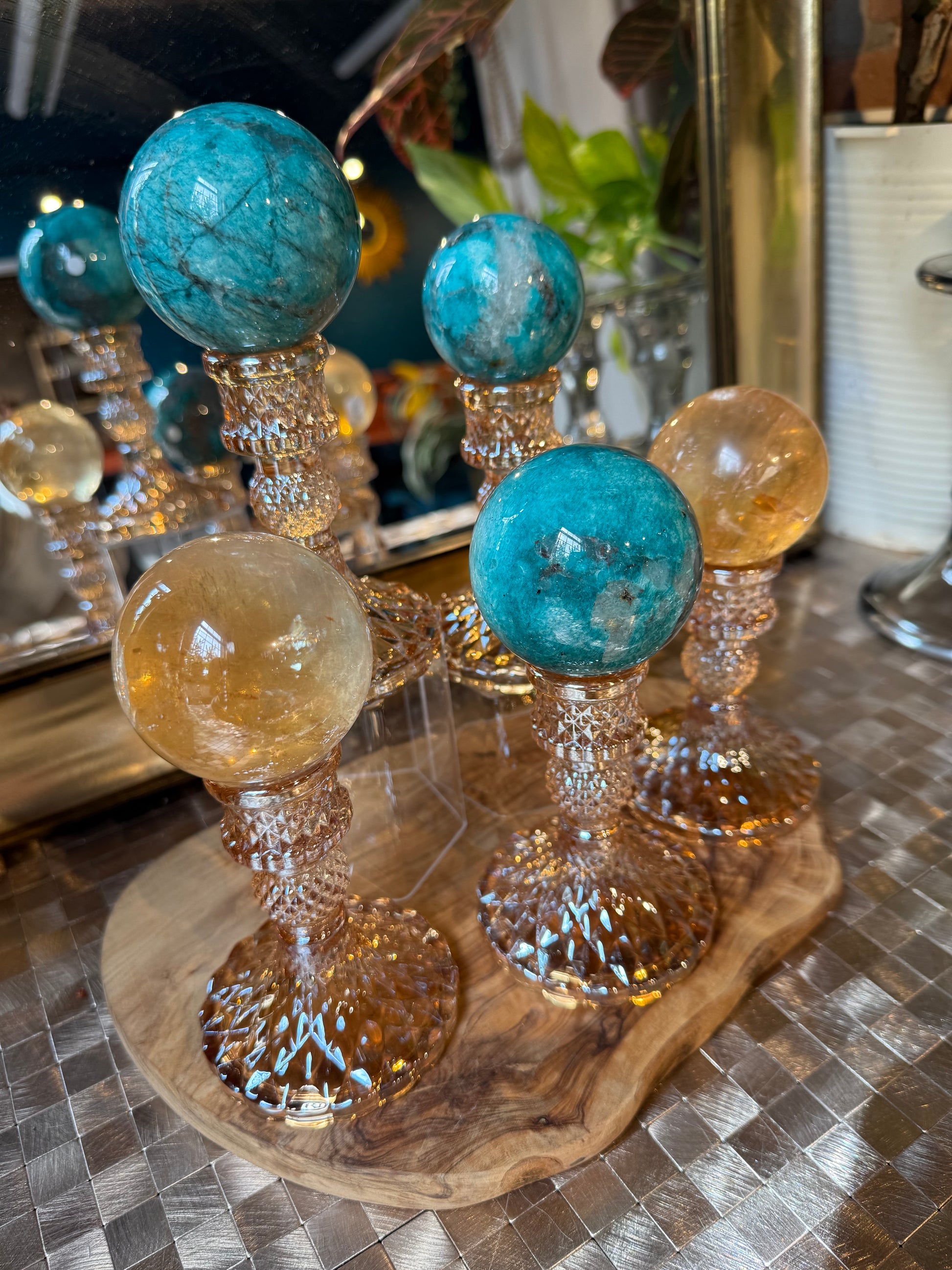 1 golden amber glass sphere holder (sphere not included)