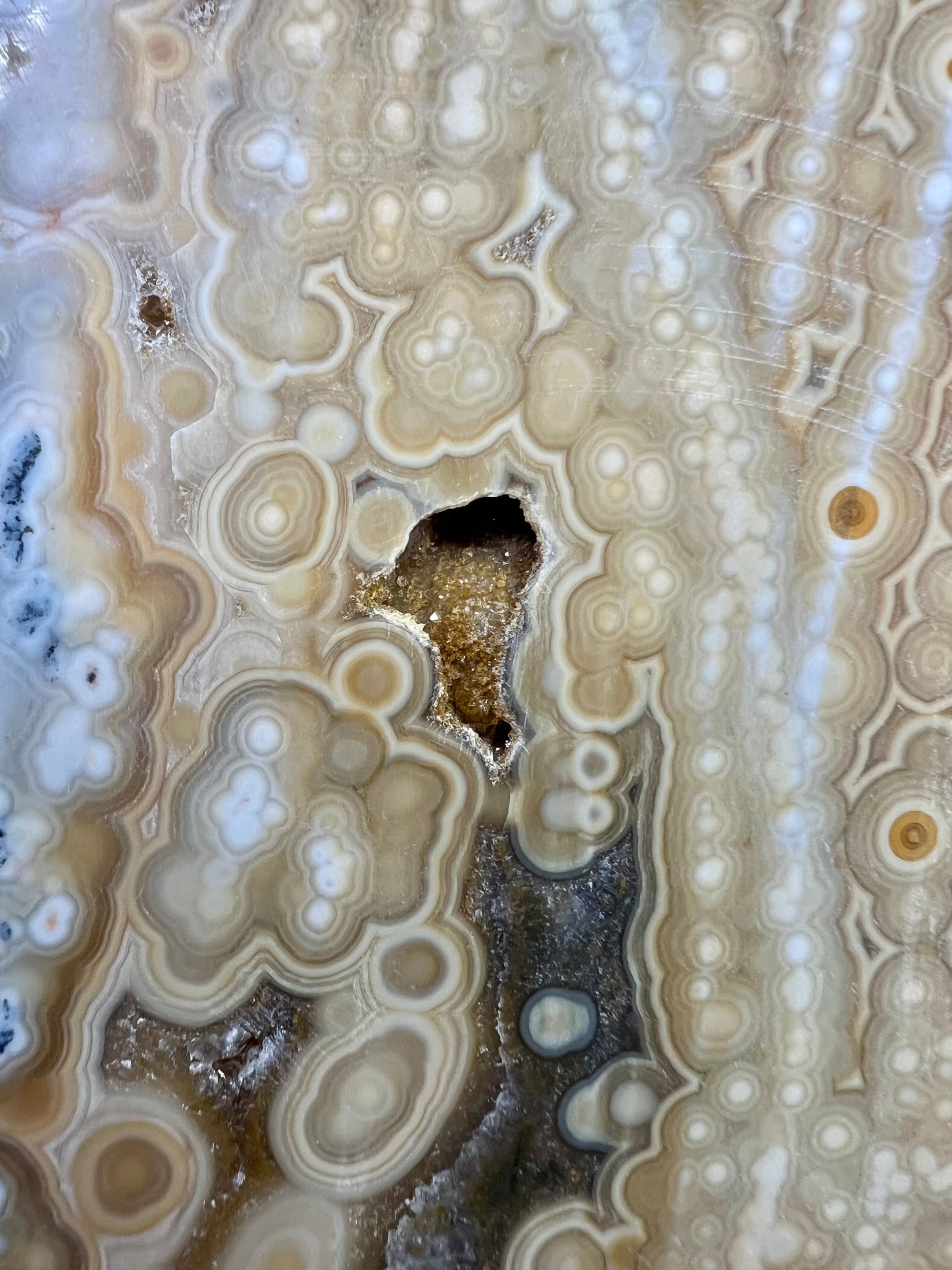 AAA yellow druzy orbicular ocean jasper slab from Madagascar