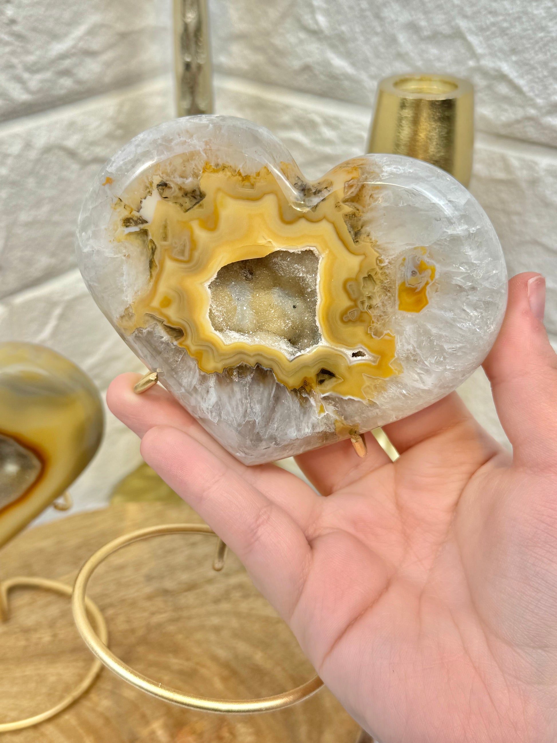 You pick! Stunning druzy agate hearts on stands from Brazil